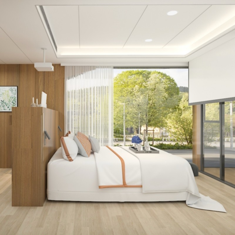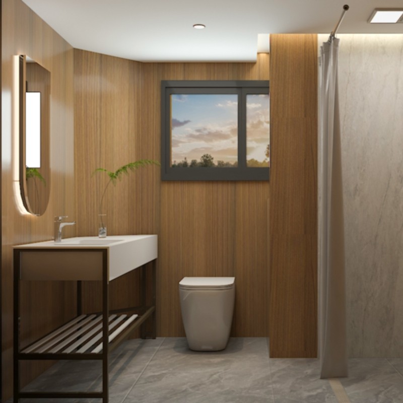 Hot-dip galvanized steel frame, 2.3 mm aluminum exterior cladding, 50 mm polyurethane insulation, smart fingerprint door lock, Low-E glazed doors and windows, engineered wood flooring, and standard bathroom fixtures, among other essentials.