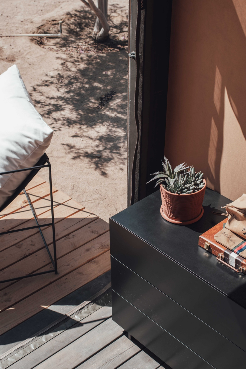 The aim was to create a feeling of luxury, while also being easy to transport and assemble. The cabin comprises a timber frame with a handcrafted canvas, with customisable modules. There are options to add renewable energy, smart systems, and bespoke interiors.